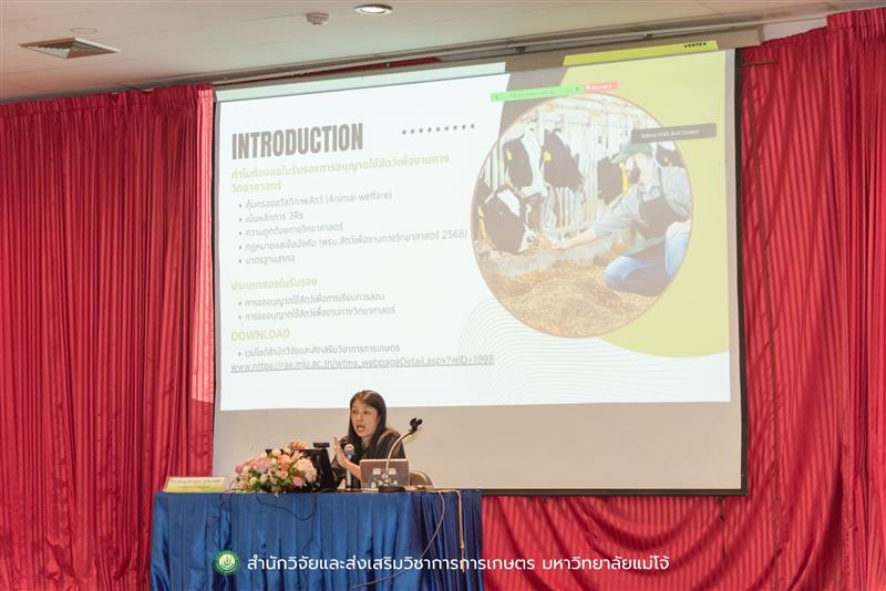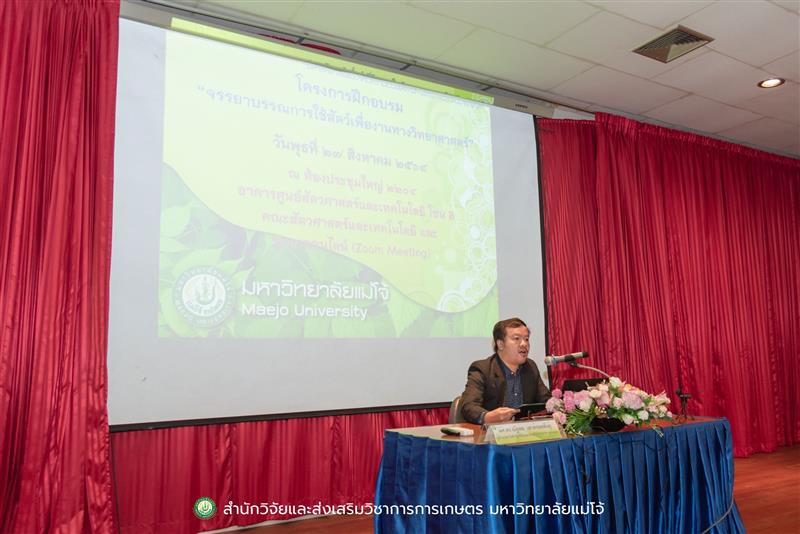 เมื่อวันที่ 27 สิงหาคม 2568 เวลา 8.30-16.30 น. สำนักวิจัยฯ มหาวิทยาลัยแม่โจ้ จัดโครงการฝึกอบรม "จรรยาบรรณการใช้สัตว์เพื่องานทางวิทยาศาสตร์" พิธีเปิดโดย ผู้ช่วยศาสตราจารย์ ดร.ณัฐพล เลาห์รอดพันธุ์ ผู้อำนวยการสำนักวิจัยและส่งเสริมวิชาการการเกษตร มีอาจารย์ นักวิจัย และนักศึกษา เข้าร่วมอบรม ณ ห้องประชุมใหญ่ 2204 อาคารศูนย์สัตวศาสตร์และเทคโนโลยี โซน B คณะสัตวศาสตร์และเทคโนโลยี และผ่านระบบออนไลน์ (Zoom Meeting) โดยมีวัตถุประสงค์เพื่อให้ผู้เข้าร่วมโครงการได้รับความรู้ ความเข้าใจที่ถูกต้องเกี่ยวกับการปฏิบัติ ต่อสัตว์ทดลองตามหลักจรรยาบรรณที่เป็นที่ยอมรับในระดับสากล และสอดคล้องกับพระราชบัญญัติสัตว์เพื่องานทางวิทยาศาสตร์ พ.ศ. 2558