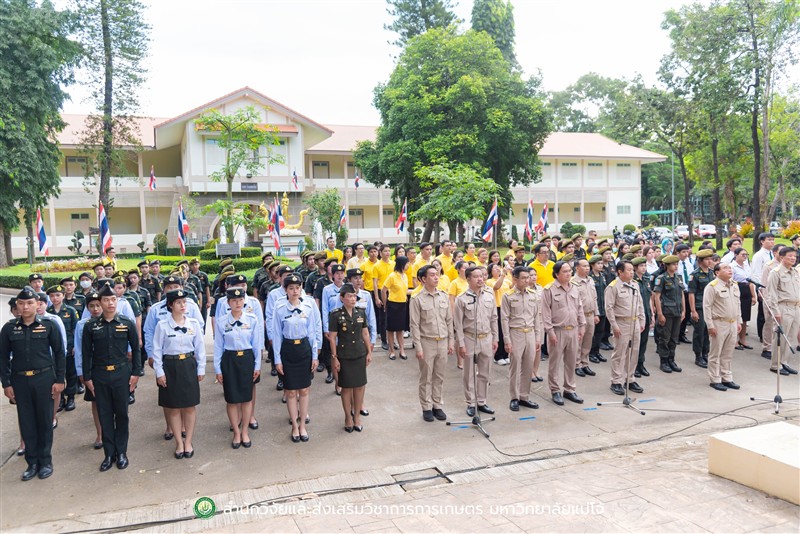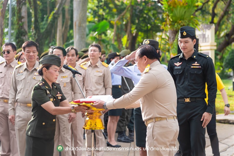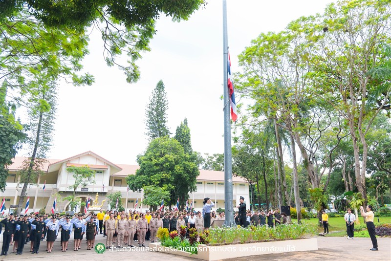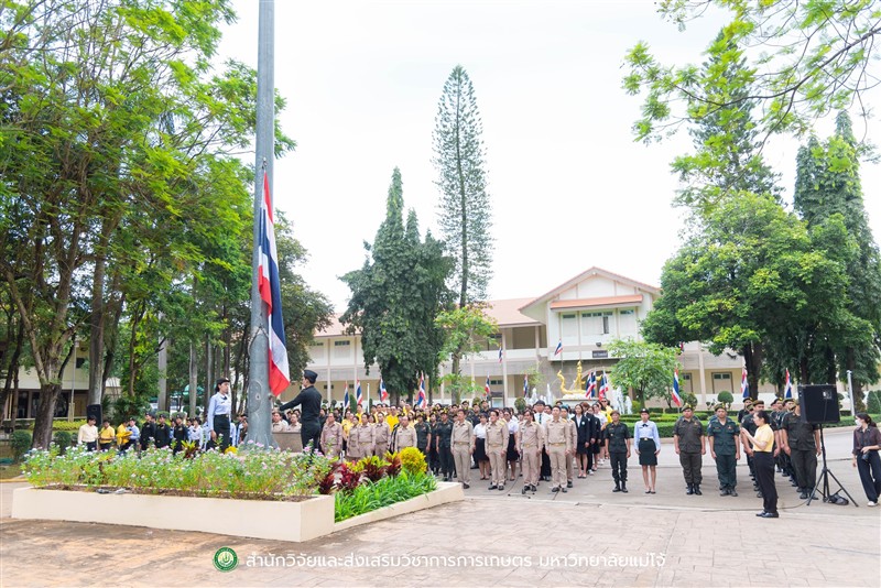 เมื่อวันที่ 29 กันยายน 2568 เวลา 07.30 น. สำนักวิจัยฯ มหาวิทยาลัยแม่โจ้ โดย ผู้ช่วยศาสตราจารย์ ดร.ณัฐพล เลาห์รอดพันธุ์ ผู้อำนวยการสำนักวิจัยฯ และนายอดิศักดิ์ การพึ่งตน หัวหน้างานสนับสนุนโครงการตามพระราชดำริและพัฒนาเชิงพื้นที่ เข้าร่วมกิจกรรมเคารพธงชาติและร้องเพลงชาติไทย เนื่องในวันพระราชทานธงชาติไทย (Thai National Flag Day) 28 กันยายน ประจําปี 2568 เพื่อเป็นการสร้างความภาคภูมิใจของคนในชาติและเป็นการน้อมรำลึกในพระมหากรุณาธิคุณพระบาทสมเด็จพระมงกุฎเกล้าเจ้าอยู่หัว ที่ทรงพระราชทานธงไตรรงค์เป็นธงชาติไทย ณ เสาธง หน้าพระพิรุณทรงนาค อาคารสํานักงานมหาวิทยาลัย มหาวิทยาลัยแม่โจ้