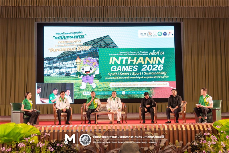 พิธีแถลงข่าวการแข่งขันกีฬามหาวิทยาลัยแห่งประเทศไทย ครั้งที่ 51 "อินทนิลเกมส์ 2026" โดย ผู้ว่าราชการจังหวัดเชียงใหม่ ประธานคณะกรรมการกีฬามหาวิทยาลัยแห่งประเทศไทย อธิการบดีมหาวิทยาลัยแม่โจ้ และเครือข่าย 12 สถาบัน