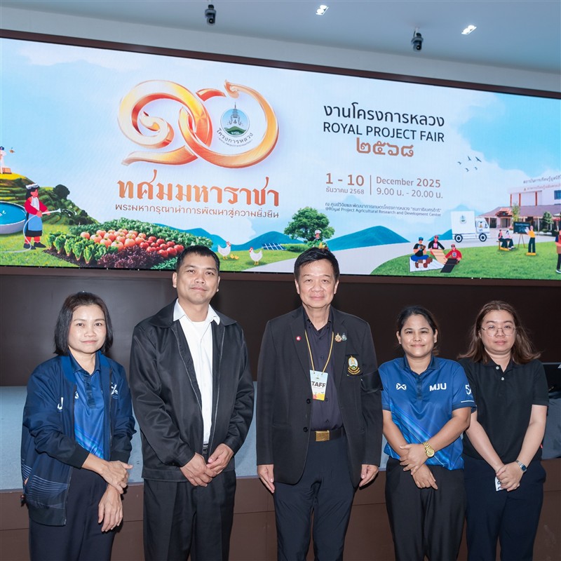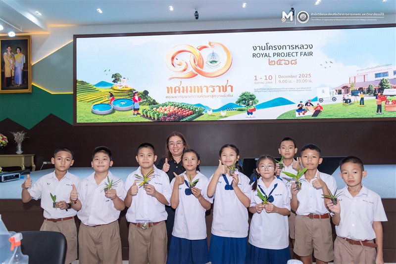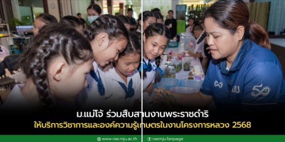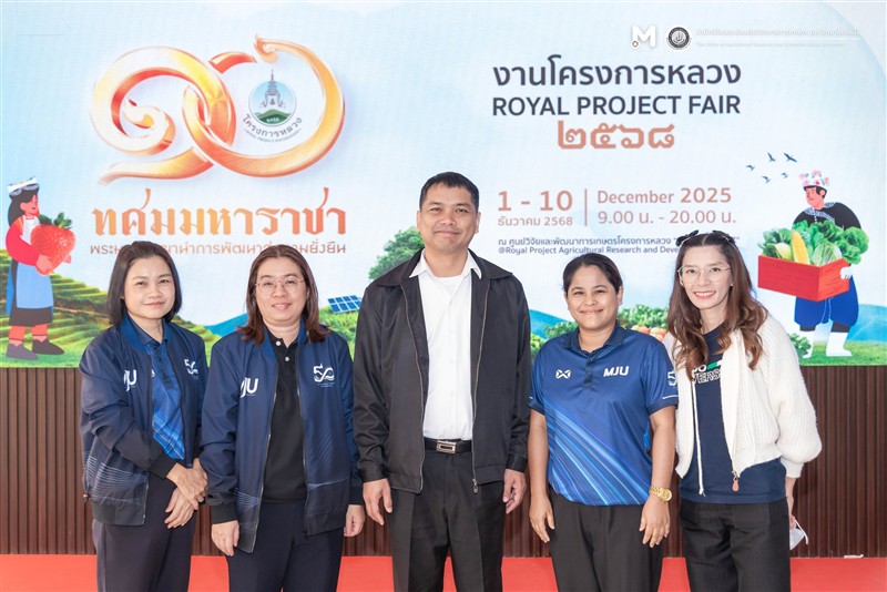 เมื่อวันที่ 8 ธันวาคม 2568 มหาวิทยาลัยแม่โจ้ นำโดย นายอดิศักดิ์ การพึ่งตน หัวหน้างานสนับสนุนโครงการตามพระราชดำริและพัฒนาเชิงพื้นที่ สำนักวิจัยและส่งเสริมวิชาการการเกษตร นำทีมคณาจารย์และนักศึกษาอาสาบำเพ็ญประโยชน์ ร่วมบริการทางวิชาการและบริการประชาชน เผยแพร่ผลงานและถ่ายทอดเทคโนโลยีองค์ความรู้ทางการเกษตรของมหาวิทยาลัยในงานโครงการหลวง 2568 ระหว่างวันที่ 8-10 ธันวาคม 2568 ณ อาคารเรียนรู้เฉลิมพระเกียรติ 72 พรรษา ศูนย์วิจัยและพัฒนาการเกษตรโครงการหลวง ชนกาธิเบศรดำริ ตำบลแม่เหียะ อำเภอเมือง จังหวัดเชียงใหม่