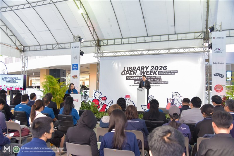เมื่อวันที่ 2 กุมภาพันธ์ 2569 ที่ผ่านมา ผู้ช่วยศาสตราจารย์ ดร.ณัฐพล เลาห์รอดพันธุ์ ผู้อำนวยการสำนักวิจัยฯ มหาวิทยาลัยแม่โจ้ เข้าร่วมพิธีเปิดงาน Library Open Week 2026 ภายใต้แนวคิด “EXPLORE • CONNECT • CREATE — A Week of Shared Learning Experiences” (สำรวจ • เชื่อมต่อ • สร้างสรรค์ — สัปดาห์แห่งประสบการณ์การเรียนรู้ร่วมกัน) โดยมี รองศาสตราจารย์ ดร.เกรียงศักดิ์ ศรีเงินยวง รองอธิการบดีมหาวิทยาลัยแม่โจ้ เป็นประธานในการเปิดงานดังกล่าว ณ สำนักหอสมุด มหาวิทยาลัยแม่โจ้ ซึ่งภายในงานมีการจัดแสดงนิทรรศการนวัตกรรม บริการห้องสมุด เวิร์กช็อป เสวนา และกิจกรรมสร้างสรรค์อีกมากมาย พร้อมโซนจำหน่ายหนังสือและสินค้าให้เลือกชม จัดระหว่างวันที่ 2 - 6 กุมภาพันธุ์ 2569