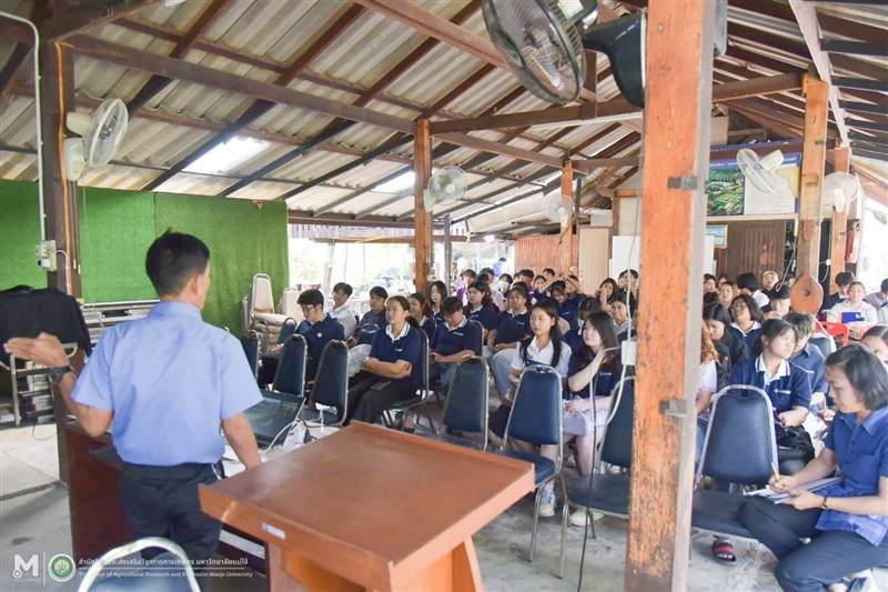 เมื่อวันที่ 2 มีนาคม 2569 สำนักวิจัยฯ มหาวิทยาลัยแม่โจ้ ต้อนรับนักศึกษาดูงานจากรายวิชา เศรษฐกิจพอเพียงเพื่อการจัดการเกษตรและสิ่งแวดล้อม คณะเศรษฐศาสตร์ มหาวิทยาลัยแม่โจ้ ทั้งนี้เพื่อส่งเสริมการเรียนรู้เชิงปฏิบัติการ สร้างความเข้าใจในแนวคิดเกษตรทฤษฎีใหม่ตามแนวพระราชดำริ และสามารถนำองค์ความรู้ไปประยุกต์ใช้ในการพัฒนาการเกษตรและสิ่งแวดล้อมได้อย่างยั่งยืน โดยมีนายนิคม สุทธา นักวิชาการเกษตรปฏิบัติการ ให้การต้อนรับพร้อมทั้งเป็นวิทยากรให้ความรู้ พร้อมทั้งพาเยี่ยมชมแปลงสาธิต ณ แปลงสาธิตเกษตรทฤษฎีใหม่ตามพระราชดำริ มหาวิทยาลัยแม่โจ้